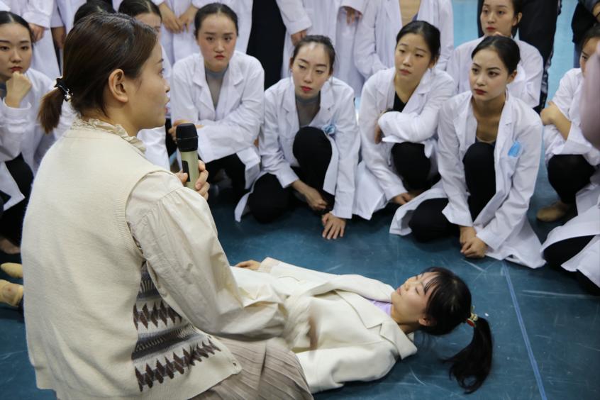 在交流活动中,学院至善舞团展示了舞蹈系青年骨干教师李珂珏创作的抗疫主题舞蹈作品《我们的妈妈》。援鄂医疗队成员对作品展现出的疫情抗击下的情感变化表示赞赏和肯定,并结合亲身经历,与在场师生就作品蕴含的抗疫精神内核进行研讨,对舞蹈演员的救助动作进行现场指导。