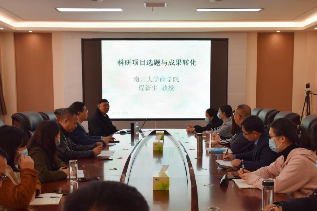 11月12日上午,《南开管理评论》副主编、南开大学博士生导师程新生教授应邀在商学院201会议室作题为“科研项目选题与成果转化”的学术报告。本次讲座由商学院副院长李志强主持,市场营销系党支部书记、主任李耀以及部分老师、学生参加此次讲座。