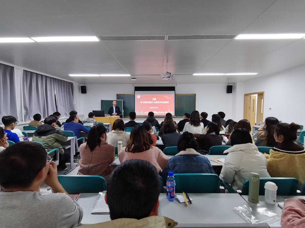 11月19日下午,临床医学院党委书记谢纳泽在曾宪梓楼临床医学实验教学中心四楼第一教室,为全体2020级临床医学专业研究生党员上党课,专题辅导党的十九届五中全会精神学习。