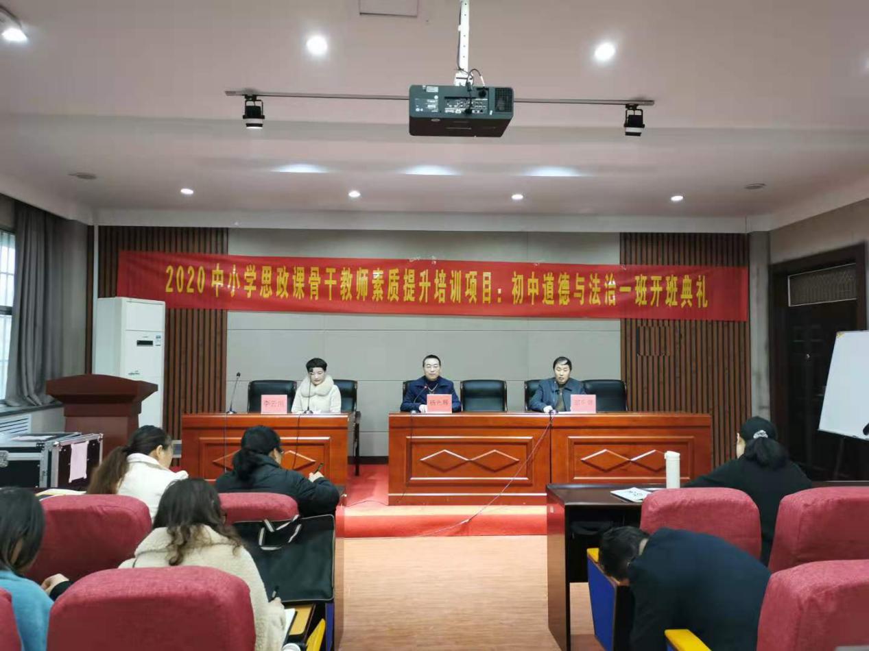 11月17日上午,2020中小学思政课骨干教师素质提升培训项目:初中道德与法治培训班一班开班典礼在金明校区举行。马克思主义学院党委书记杨光辉参加开班典礼,典礼由马克思主义学院继续教育办公室主任邵先崇主持,仪式在庄严的国歌声中拉开序幕。