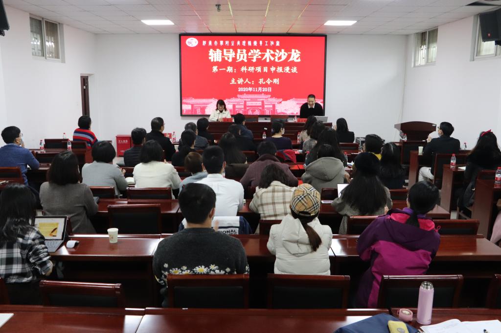 为进一步提升辅导员科研水平和业务能力,加强辅导员队伍专业化、职业化、专家化建设,11月20日,“研之有理”辅导员工作室在哲学与公共管理学院第三会议室举办专题学术沙龙。河南大学人文社科研究院副院长、文学院硕士生导师孔令刚副教授围绕科研项目申报相关问题进行了细致分享。学生处相关领导、各学院副书记、辅导员代表共40余人参加本次活动。