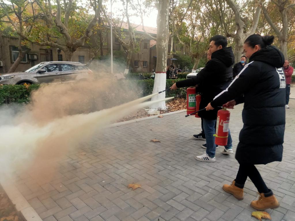 随后,进行了“消防安全实战演练”,马建军科长向老师们讲解了灭火器正确的打开方式、使用中注意事项等,带领大家亲身体验了消防实战演练。