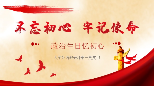 为了加强党的建设,强化党员的身份意识、宗旨意识和责任意识,更好的服务于学校和大学外语教研部的中心工作,大学外语教研部第一党支部于12月3日下午在部单位党员活动室开展了主题为“不忘初心、牢记使命——政治生日忆初心”的主题党日活动。会议分为两个阶段:支部为党员集体过政治生日;黄勇昌同志作题为《基于批判思维导向的大学英语教育教学改革与实践》学术报告。全体党员参加活动。