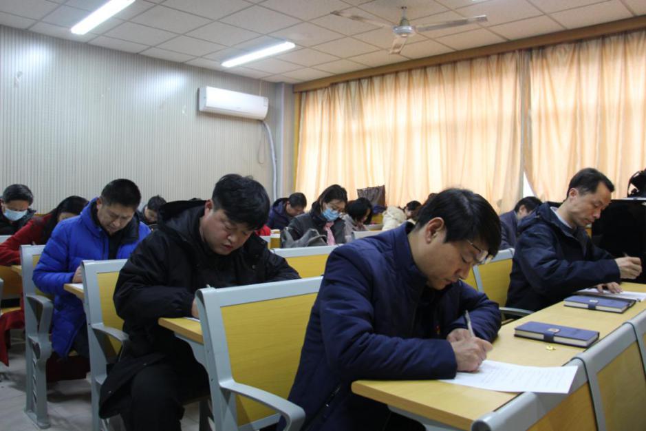 下午2:30,测试在新艺术楼4个考场同时进行,学院党员领导干部以普通党员的身份与支部成员一起参加了测试。本次测试采取闭卷笔试答题的方式进行,内容围绕习近平新时代中国特色社会主义思想、党章党规、“四史”、校史、院史等多个方面,全方位考查了党员对应知应会知识的掌握情况。