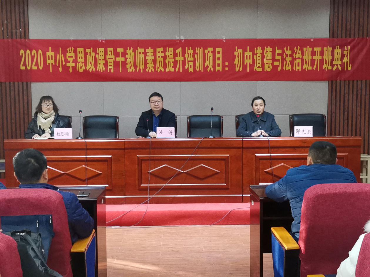 11月24日上午,河南省2020中小学思政课骨干教师素质提升培训项目:初中道德与法治培训班二班开班典礼在河南大学金明校区举行。马克思主义学院党委副书记吴涛参加开班典礼,典礼由马克思主义学院继续教育办公室主任邵先崇主持,仪式在庄严的国歌声中拉开序幕。