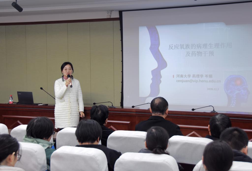 以“增进学者友谊、促进学术创新、推进‘一流’建设”为旨归的河南大学生物&医学午茶会(Henan University,Biweekly BioMed Seminar,简称“HU-BBS”) 总第30期、2020年第16期,12月3日在护理与健康学院二楼报告厅举办。河南省自然科学基金优秀青年基金获得者、天然药物与免疫工程河南省重点实验室岑娟教授应邀主讲题为“反应氧族的病理生理作用及药物干预”主题学术报告。基础医学、临床医学、药学、护理学、生物学、材料学、软件工程、化学等学科专家学者50余人参加线下会场报告并进行充分交流,校内外多名专家学者和广大硕博研究生通过腾讯会议在线参加研讨。