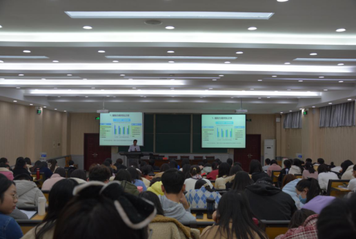 11月26日下午,马克思主义学院形势与政策教研室主任卜万红副教授受邀来数学与统计学院,在学院二楼南阶梯教室为全体师生党员、入党积极分子作主题为《大变局时代中国机遇、挑战及其应对》的十九届五中全会精神解读报告会,报告会由学院党委副书记赵红磊主持。