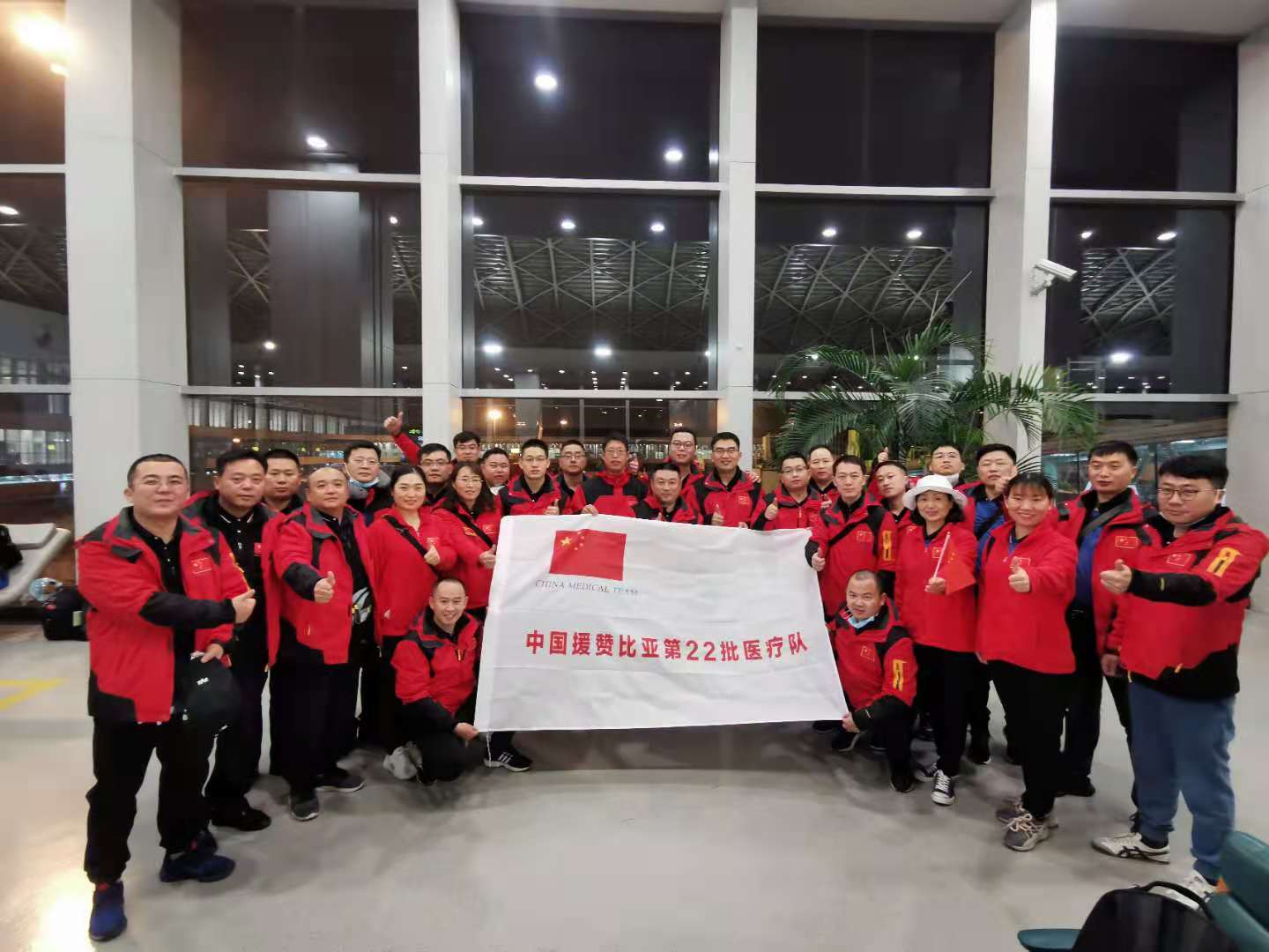据悉,中国第22批援赞医疗队一行28人于11月26日上午9时从郑州河南省援外医疗队集训中心出发,下午2时许从郑州国际机场飞往成都,在成都搭乘埃塞俄比亚航空公司客机于次日凌晨出境,途中经停亚的斯亚贝巴国际机场和哈拉雷机场国际转机,最终于27日下午4时许抵达赞比亚首都卢萨卡。在机场,医疗队受到等候已久的中国驻赞大使馆代表、上批留守医疗队员、中资企业代表、中国商会及华人代表的热情迎接。随后,医疗队在赞比亚警方高规格的护送下进入中国医疗队驻地。全部旅程用时32个小时,历经季节由冬到夏的变化。