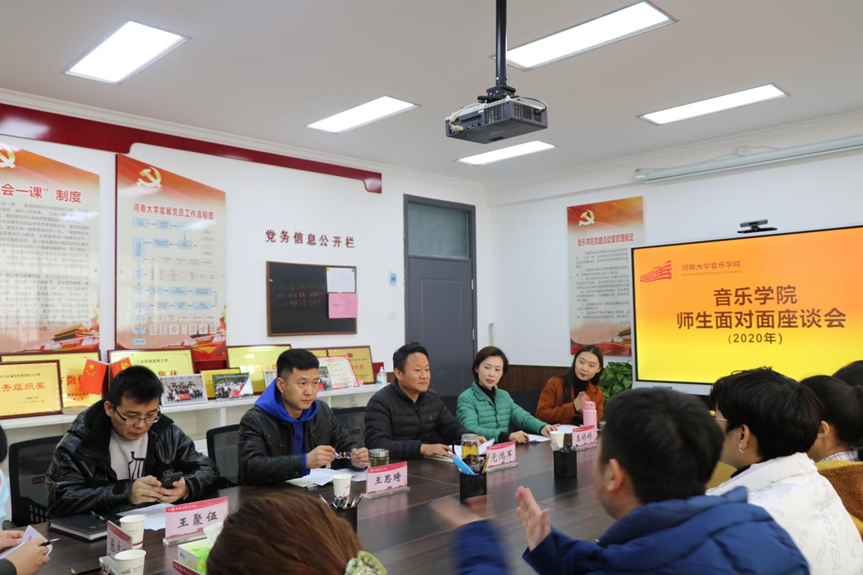 为进一步加强师生交流,让2020级学生能够更好、更快地融入校园生活,11月27日,音乐学院在三楼党建活动室召开了2020年度“师生面对面”座谈会。音乐学院院长王思琦,院党委副书记党鸿军、院党委办公室、教务办公室、院团委负责老师以及2020级研究生、本科生辅导员,与2020级硕士生、本科生学生代表一起围绕在学习与生活中遇到的突出问题进行了深入细致的交流和沟通。座谈会由音乐学院团委副书记金慧主持。
