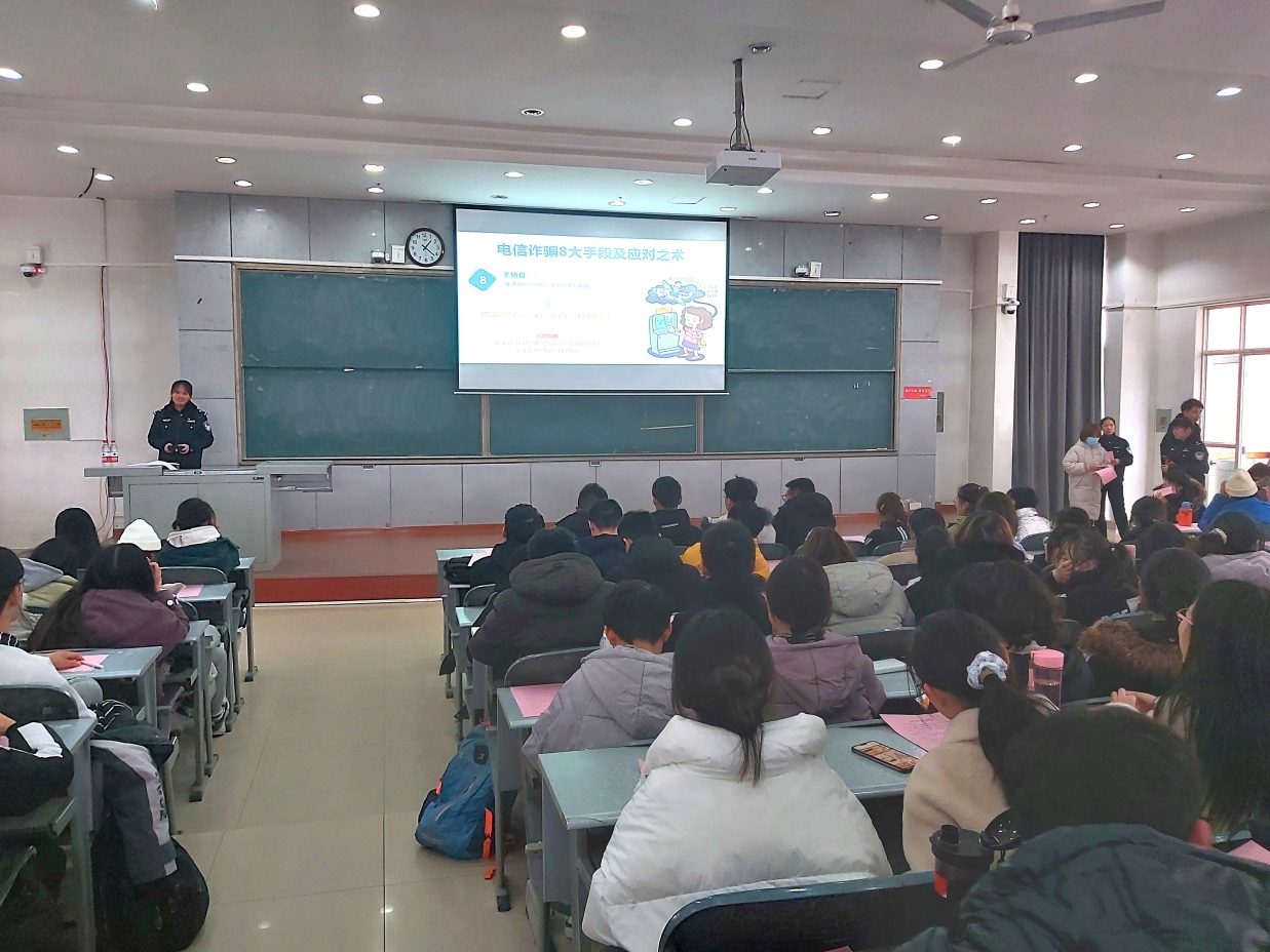 为提高同学们的安全防范意识,增强自我保护能力,进一步维护同学们的自身合法权益,11月13日中午,化学化工学院于7305教室开展“防电信诈骗”讲座,讲座共分两场。讲座由金耀路派出所民警张文主讲,学院全体在校本科生、研究生参加讲座。