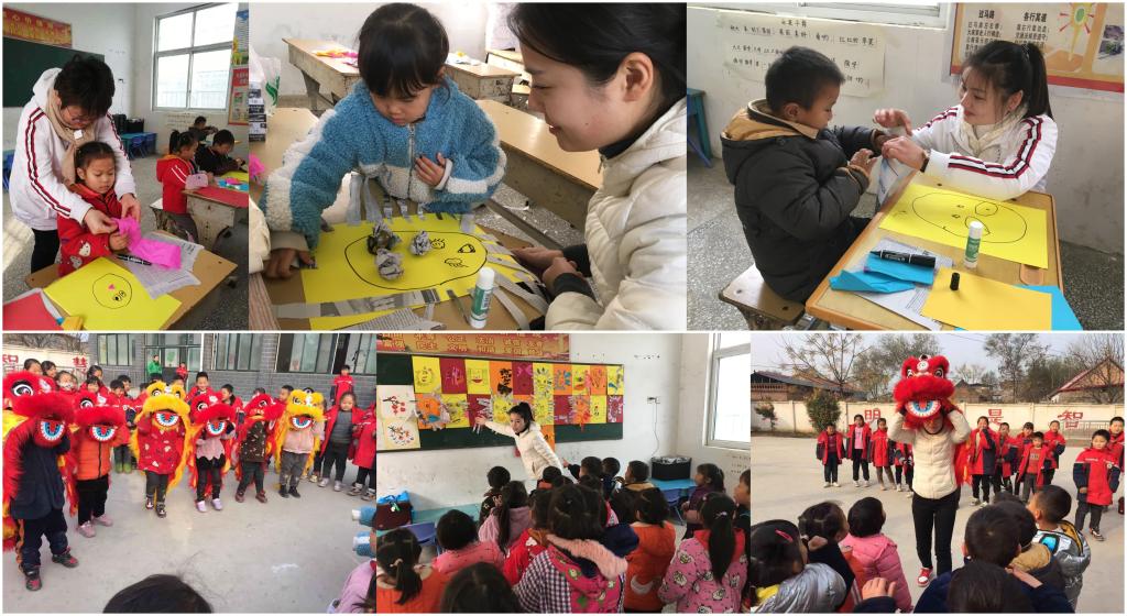 老师们精心安排了本次学习的主题,准备了教学道具,带领孩子们进行传统的舞狮表演,学习了解中国传统的舞狮文化。同时,带着准备的练习素材在课堂上教孩子们学习剪纸,练习绘画,制作“舞狮”。老师们的到来,在寒冷的冬日里给孩子们送来了温暖。