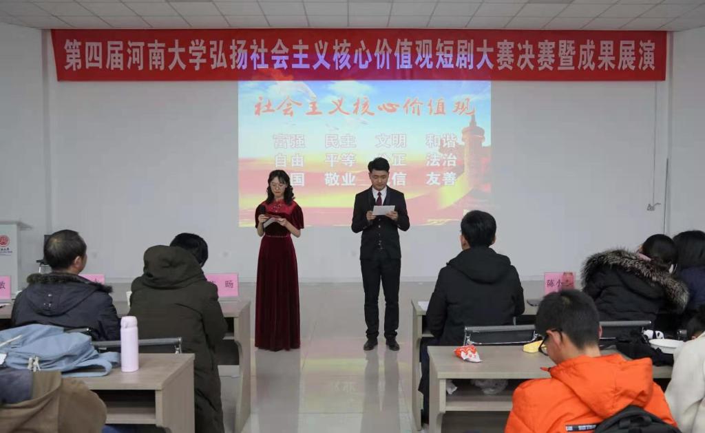 12月13日上午,河南大学第四届弘扬社会主义核心价值观短剧大赛决赛暨成果展演在明伦校区科技馆一楼报告厅拉开帷幕。马克思主义学院副院长任东景、张枫林及思想道德修养与法律基础教研室全体教师出席此次活动。