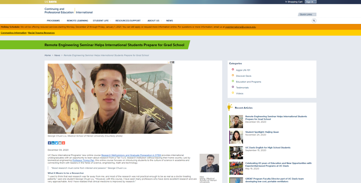 加州大学戴维斯分校:https://cie.ucdavis.edu/news/remote-engineering-seminar-helps-international-students-prepare-grad-school