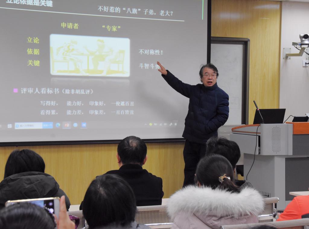 黄宁表示,申请书撰写过程中务必要重视逻辑的重要性。他提倡大家充分运用图表、写好立论依据、深度挖掘与描述项目的创新性。围绕立项依据部分,黄宁重点从关键词(主要研究内容)、题目(关键词构成了题目--超浓缩的一句话)、目的(题目的精细镜像,旨在探索题目)、假设(题目稍粗的镜像)、方法(为达目的或验证假设选取并采用的手段)、结果(观测获得的定量、定性、定位等数据)、讨论(针对结果方法条件进行的相关比较)、结论(目的是否达到)八个层次进行了深入解析。黄宁表示,“题目”是灵魂,立项依据应多引用“大数据”、“大咖”、“牛人”的权威主流观点,做到大气、有力、生动;同时应做到时空、动静、辩证相结合,使论证过程一环扣一环。报告结束时,他友情提醒大家立项依据书写过程要注意分段,让评审专家便于阅读和理解。近两个小时的精彩报告赢得了线下会场老师们的阵阵掌声。与会青年教师纷纷表示,报告颇具启发性,为以后的项目申报拨云开雾、提供了很好的思路,收获很大,受益匪浅。