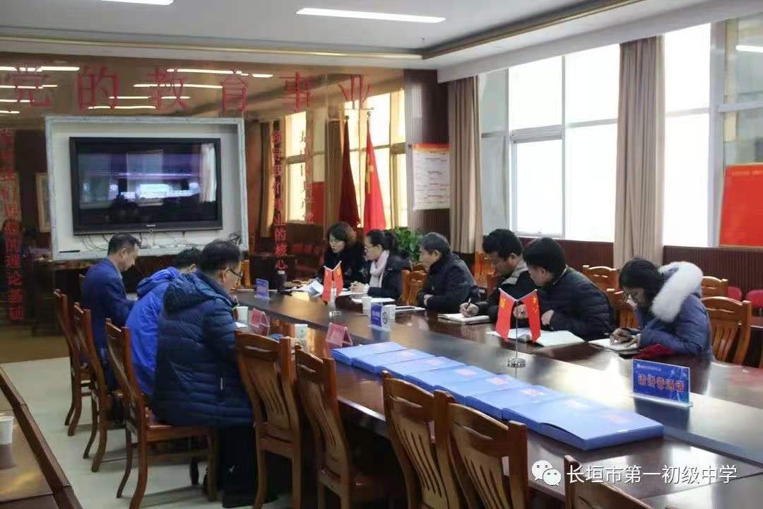 12月17日上午,由河南大学远程与继续教育学院院长徐书耀一行三人代表河南省“国培计划”过程视导组,来到长垣县第一初级中学,视导调研2020年度“国培计划”教师培训工作实施情况。长垣县第一初级中学校长蔡瑞昌、副校长许江军、王全周及“国培计划”领导小组负责同志、班主任等参加了在行知楼二楼会议室举行的汇报和座谈活动。