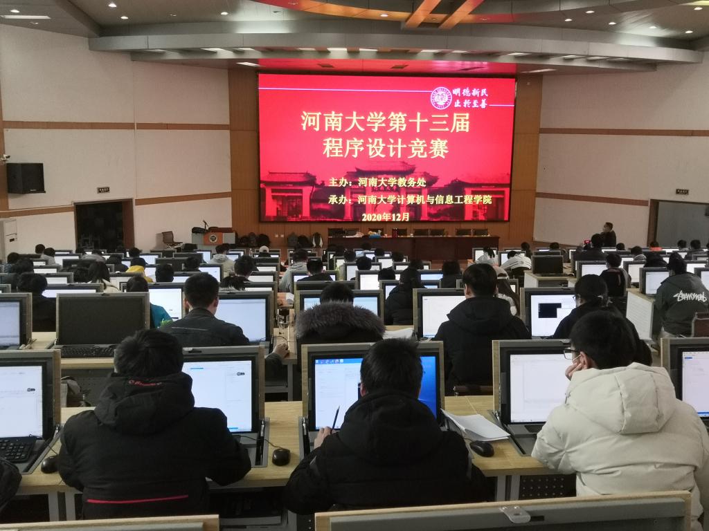 12月19-20日,由教务处主办、计算机与信息工程学院承办的河南大学第十三届大学生程序设计竞赛 在金明校区举行。来自计算机与信息工程学院、软件学院、物理与电子学院、国际与教育学院、迈阿密学院等1000余名学生参赛