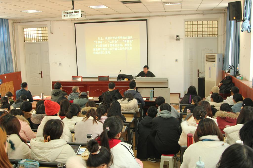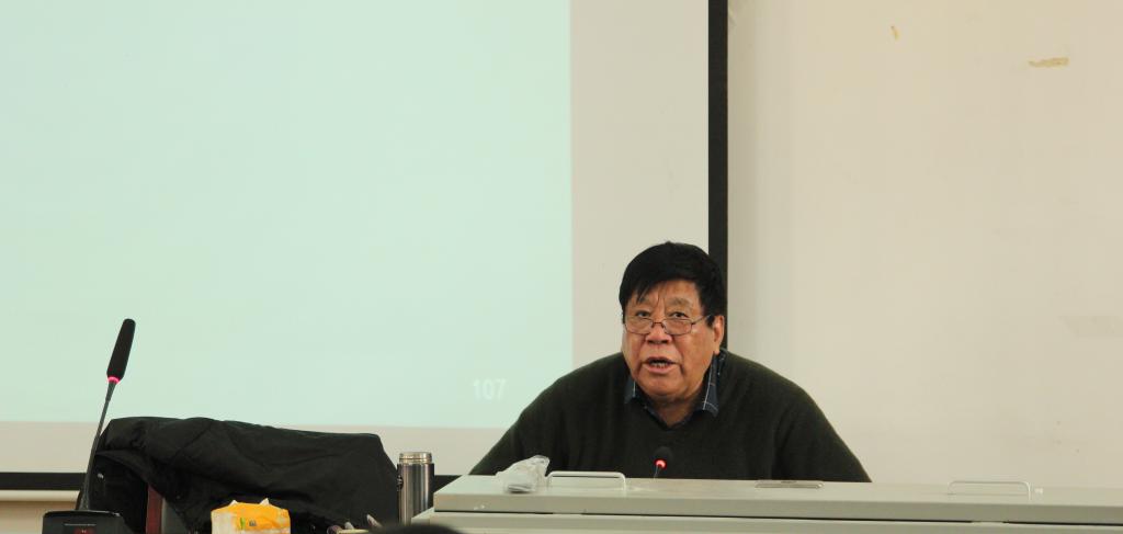 12月20日上午,中国文艺理论学会副会长、中国作家协会理论批评委员会委员、联合国教科文组织“人与生物圈”计划中国委员会委员、河南大学讲座教授鲁枢元教授应文学院邀请,在学院二楼教室开展了题为《浅谈生态哲学》的讲座。鲁枢元教授长期从事文艺学跨学科研究,在文学心理学、文学言语学、生态文艺学诸领域有开拓性贡献,文学院各位老师、各年级本科生与研究生都慕名而来。讲座由文学院武新军教授主持。现场虚无坐席,学术氛围浓厚。
