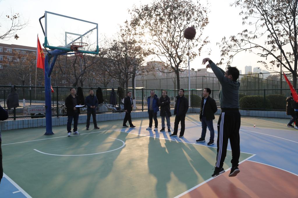 慢跑项目结束后,在金明校区篮球场又进行了“赶羊穿林”、投篮、套圈等多个比赛项目。在“赶羊穿林”比赛中,教师们以系室分组参与,接力进行带球过障碍,旁观的老师们都为参赛成员加油打气,时不时地为他们的精彩表现而欢呼。在“赶羊穿林”轻松快乐的氛围中,套圈比赛开始了,看似简单的套圈,难度系数可不低,老师们认真的投,分析小圈运动轨迹,玩儿的不亦乐乎。与此同时投篮比赛也在进行着,教大家沿三分线自主围成了半圆。参赛老师拿到篮球就按耐不住激动的心情、跃跃欲试,他们全力以赴、一丝不苟,一点点地增加着比赛积分。