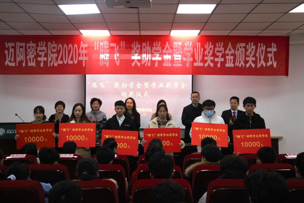 本次颁奖典礼共表彰了54名腾飞奖助学金、93名学院奖学金获奖学生。据了解,为了让最优秀的学生可以公平的享受最优质的教育资源,迈阿密学院提供多种奖、助学金激励优秀学子。除学校各种奖助学金外,学院单独设立了学院优秀学业奖学金、英语学习单项奖学金,“腾飞”奖助学金等学院专项专门奖学金。其中,学院优秀学业奖学金一等奖1.8万元/人,二等奖1万元/人,三等奖0.5万元/人;英语学习单项奖学金用于奖励雅思考生,奖金由全额报销雅思报名费至2万元不等;“腾飞”奖助学金由郑州腾飞建工集团捐资设立,其中,优秀学业奖学金特等奖1万元/人、一等奖0.8万元/人、二等奖0.5万元/人,新生入学助学金1.5万元/人,腾飞奖助学金分年度执行,每年总额为42万元人民币,自2018年9月起,已连续发放三年。