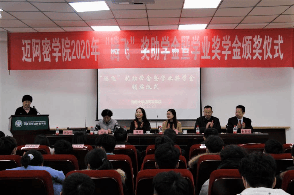 典礼上,校友工作与教育发展基金会办公室刘波主任宣读了《河南大学迈阿密学院关于表彰2019-2020学年“腾飞”优秀学业奖学金、新生入学助学金获得者的决定》,校党委学生工作部王友成部长宣读了《河南大学迈阿密学院关于表彰2019-2020学年迈阿密学院学业奖学金获奖者的决定》。与会领导为获奖学生颁奖。