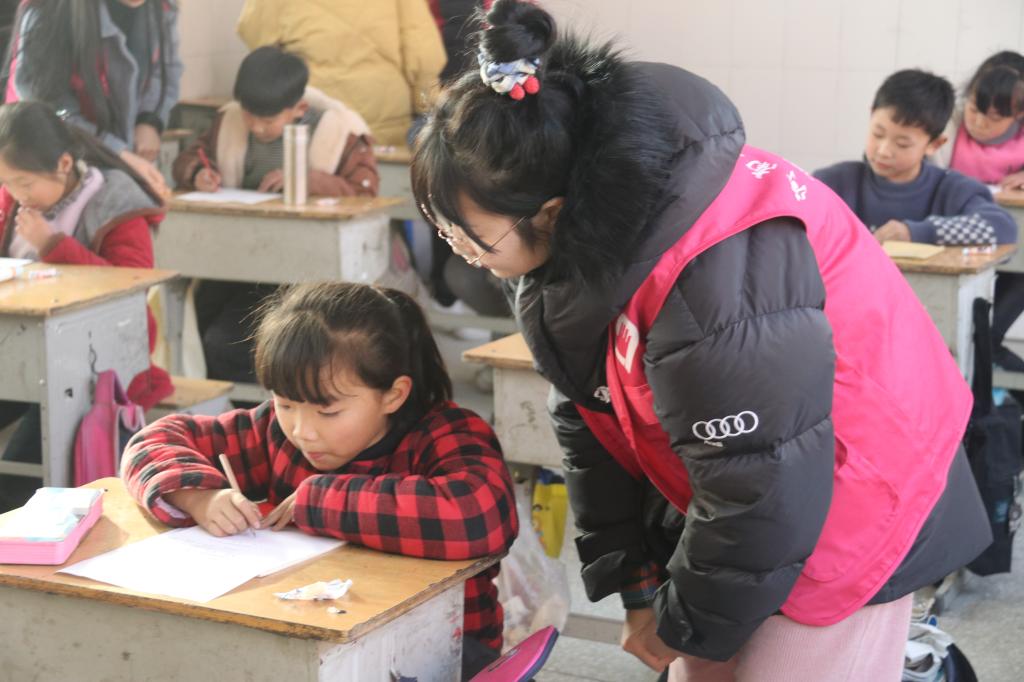 活动即将结束时,一年级一位女学生突然举起手,拿出同学们写的三封信交给老师。她说:“老师好!前两次给我们上音乐课的田老师因为这次要参加期末考试没有来,希望您们把这三封信交给他,我们很想念他,谢谢您们!我们还希望您们以后经常来教我们唱歌,我们都喜欢唱歌!”看着这三封短信大家很感动,这就是爱心相互碰撞的感动,是无私奉献的真情回报,是志愿活动的意义诠释。