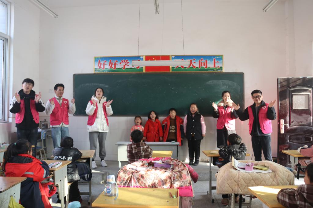 师生们与1至4年级各班主任老师沟通后,带着他们精心准备的教学用具和新年小礼物,按照事先根据不同专业和特点做好的分组走进四个年级学生教室。他们带领学生复习前两周已经学会演唱的歌曲,检验同学们课下练习的效果。在老师们的安排下,学生们精神饱满、斗志昂扬,积极参与活动,让老师们检阅,顿时响亮的红歌声响彻整个校园。随后,师生们根据自己的专业特长,登台为小朋友们进行唱歌、跳舞、演奏乐器等表演,并讲解歌曲创作背景和历史意义,教授基础的舞蹈动作,讲解不同乐器的演奏风格,让小朋友们近距离接受艺术的熏陶与教育,感悟艺术之美。最后,师生与小学生们进行交流,调研乡村小学生对音乐教育的需求和目前义务教育阶段艺术教育的现状。