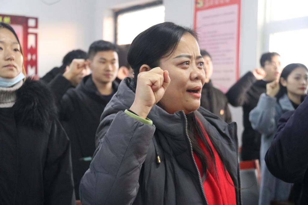 最后,全体党员、预备党员面对党旗庄严宣誓,并在双楼村委办公室前合影留念。