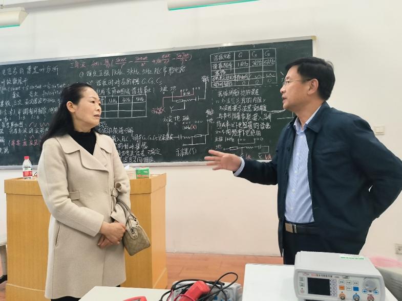 民权县教体局局长岳英和物理与电子学院副院长魏高明商谈比赛事项