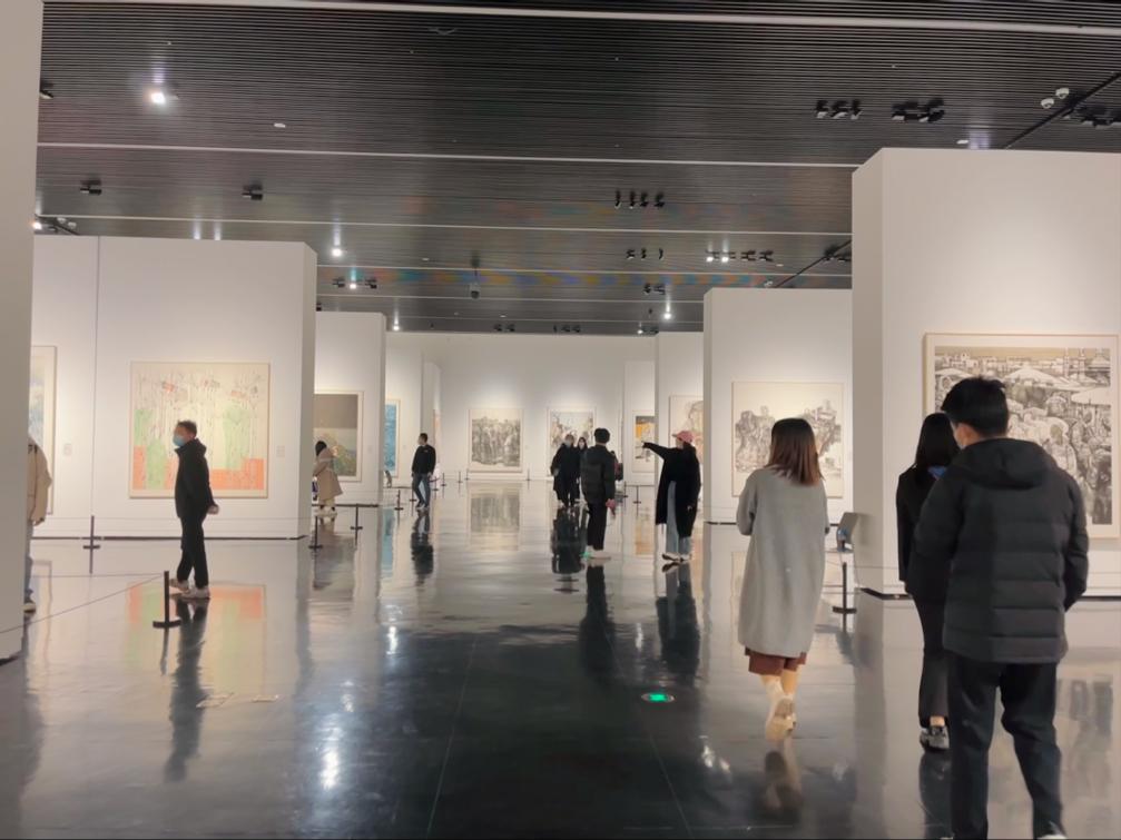 (美术学院师生在展厅内参观展览)