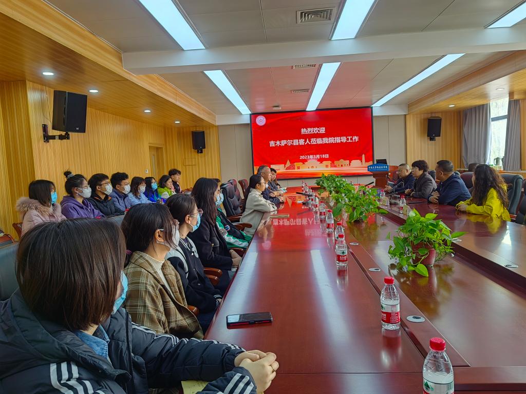 谢纳泽代表学院对杨玉清一行表示热烈欢迎,介绍了学院的人才培养情况、毕业生考研与就业情况。杨玉清介绍了新疆和吉木萨尔县经济文化发展情况、卫生事业发展现状以及人才引进政策,表达了对医药卫生人才的强烈需求。俞国兵介绍了吉木萨尔县人民医院的发展现状、发展规划、人才政策和用人需求。季旭东介绍了吉木萨尔县中医医院的发展历史、医院文化、特色医疗技术、人才政策和用人需求。随后,杨玉清一行与临床医学院有关辅导员和学生代表畅所欲言,就医学生培养、规培和就业创业工作进行了座谈交流,增进了相互了解和友谊。