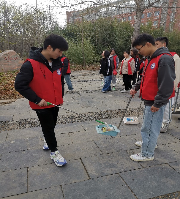 学习结束后,全体党员和张婷老师一起在物理与电子学院及其周边进行了志愿活动,用实际行动践行雷锋精神。大家将学院内每个楼层的座椅和展示白板摆放整齐,擦拭干净,把学院周边及京友亭的塑料瓶、塑料袋、纸屑等垃圾进行了清理。志愿活动中大家互相配合、协调一致、干劲十足,充分发扬不怕苦、不怕脏、不怕累的雷锋精神。