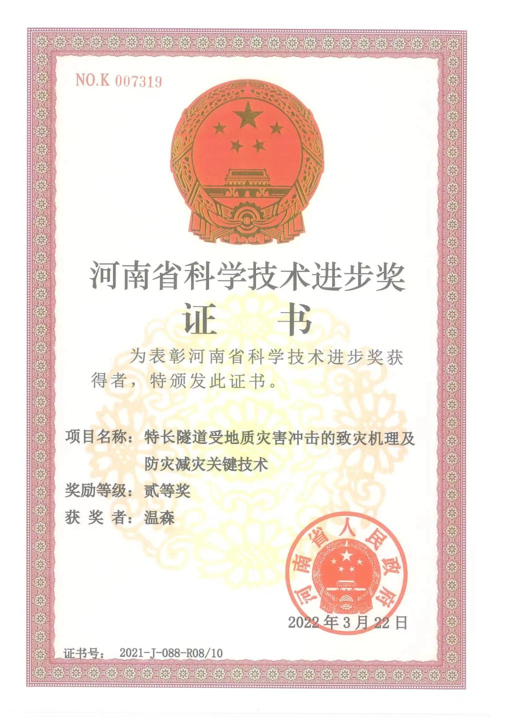 近日,河南省人民政府公布了2022年度河南省科学技术奖励名单,土木建筑学院再创佳绩,以第一完成单位获得河南省科技进步奖二等奖1项,三等奖1项,年度获奖的质量和数量均取得突破。据统计,2018年至今,土木建筑学院连续五年荣获省级科学技术奖,共计7项,其中二等奖三项,三等奖四项,具体名单如下表:
