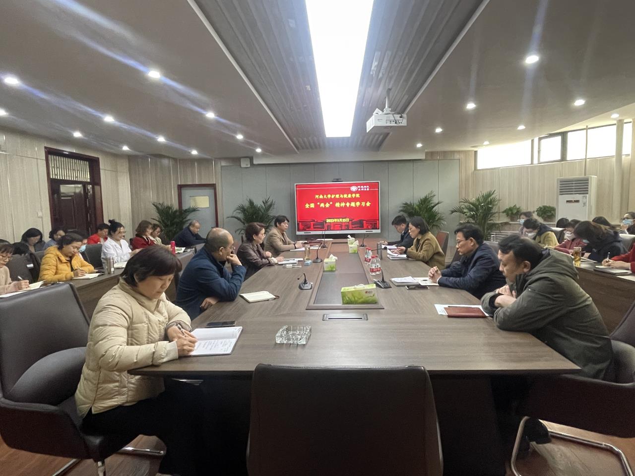 3月23日,护理与健康学院在二楼会议室召开全国两会精神专题学习会,全体教职工参加。