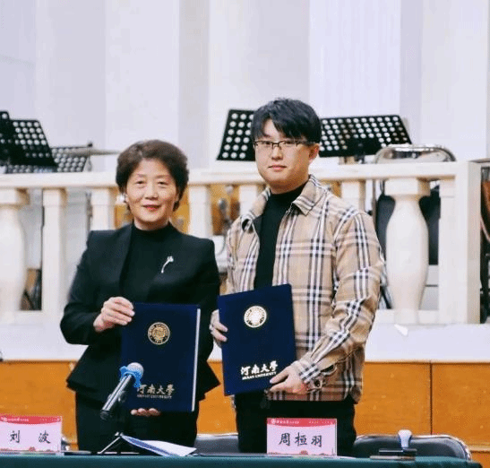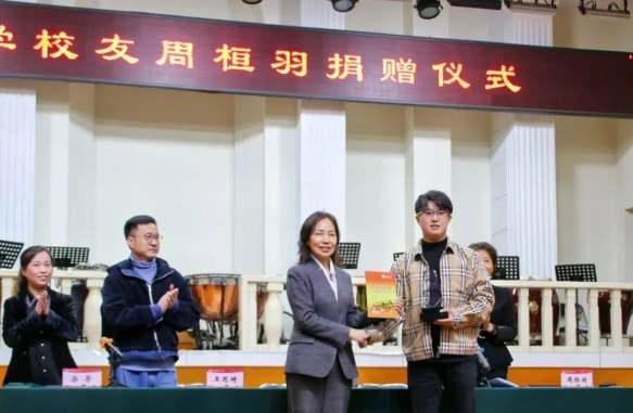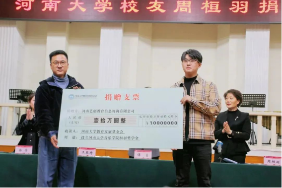 3月23日下午,河南大学校友周桓羽捐赠仪式在音乐学院音乐厅举行,校友周桓羽捐赠10万元,设立“桓羽奖学金”用于学院教育发展建设。校党委副书记、副校长谭贞,河南大学教育发展基金会秘书长刘波,音乐学院院长王思琦,音乐学院副院长韩梅及捐赠方河南艺创教育信息咨询有限公司创始人周桓羽,嘉宾河南墨言集团股东及学院师生代表参加了捐赠仪式。仪式由音乐学院党委副书记柴芳主持。