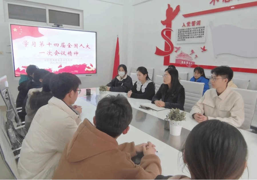 为深入学习十四届全国人大一次会议及习近平总书记在大会闭幕式上的重要讲话精神,3月23日,商学院本科生第五党支部于党建活动室召开“学习十四届全国人大一次会议精神”主题党日活动。学院党委副书记李平、团委书记王梦出席本次活动,本科生第五党支部30名党员全部参会。活动由本科生第五党支部书记张诚主持。