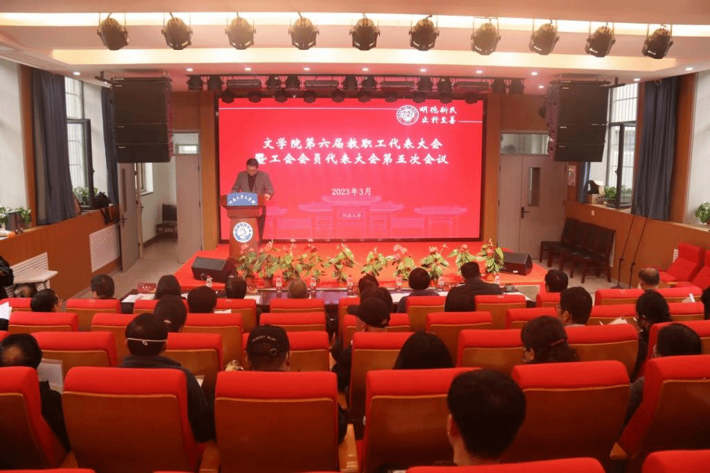 院长武新军作了《赓续文脉,推动文学院新百年再辉煌》的学院工作报告。报告中提到,2022年,中国语言文学学科入选河南省一流学科倍增计划,被河南大学列入1+4+N的学科发展战略,成为学校重点支持建设的学科,教学科研、人才引进、学生思想政治教育以及校友与基金工作都取得了可喜的成绩,先后获评2022年度河南大学人才引进先进单位、统战工作先进单位、校友与基金工作先进单位、工会工作先进单位。学院承办的书香追梦系列活动获得社会广泛关注,进一步营造了爱读书、读好书、善读书的良好校园文化氛围。在学校110年校庆之际,文学院院学生社团马克思主义研究会收到了党和国家领导人的口头回信,这给学院思政工作注入了强大动力,学院也将总结经验打造具有学院特色的思政教育品牌。