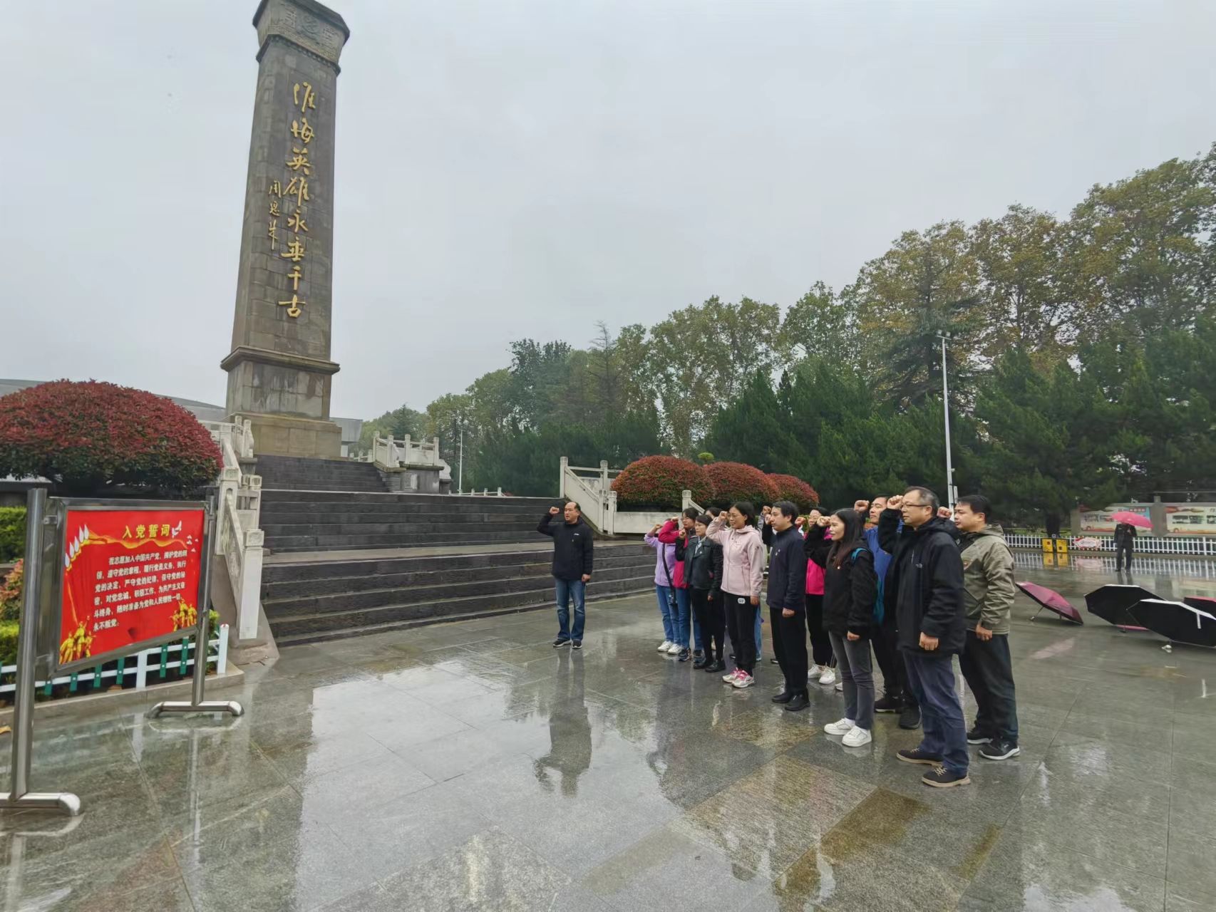 在“淮海英雄永垂千古”纪念碑下,图书馆党委书记马晓静为全体党员作了《学习革命精神 坚定理想信念》的微党课。一个政党的前途命运,一支军队的胜败荣辱,最终都取决于民心向背。行程万里,不忘初心,她号召全体党员牢记使命,发扬革命先烈大公无私、不畏险阻、勇于斗争、不怕牺牲的精神,坚定理想信念,为学校发展和国家建设作出更大贡献。