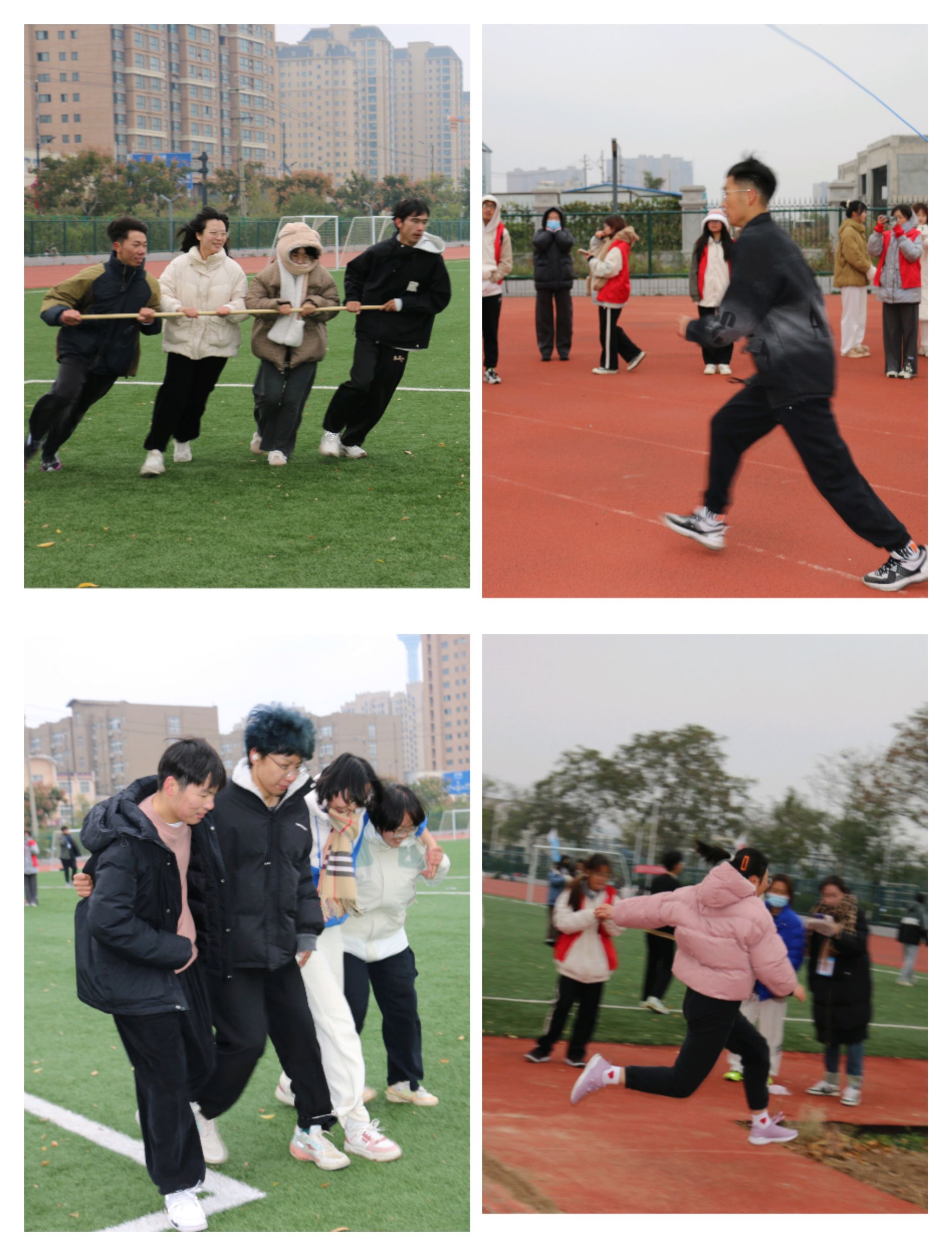 随着执行院长郑展鹏宣布本次运动会正式开幕,健儿们挥洒激情与汗水的征途就此启程。各项比赛精彩纷呈,高潮迭起,既有展现个人特长的短跑、长跑、跳高、跳远、实心球等项目,也有考验团队合作的接力赛、拔河、跳绳等集体项目,还有“旱地龙舟”“袋鼠接力”“棍推乾坤”“四人五足”“众星捧月”等趣味项目。同学们摩拳擦掌,奋力争先,场面紧张有序,妙趣横生。