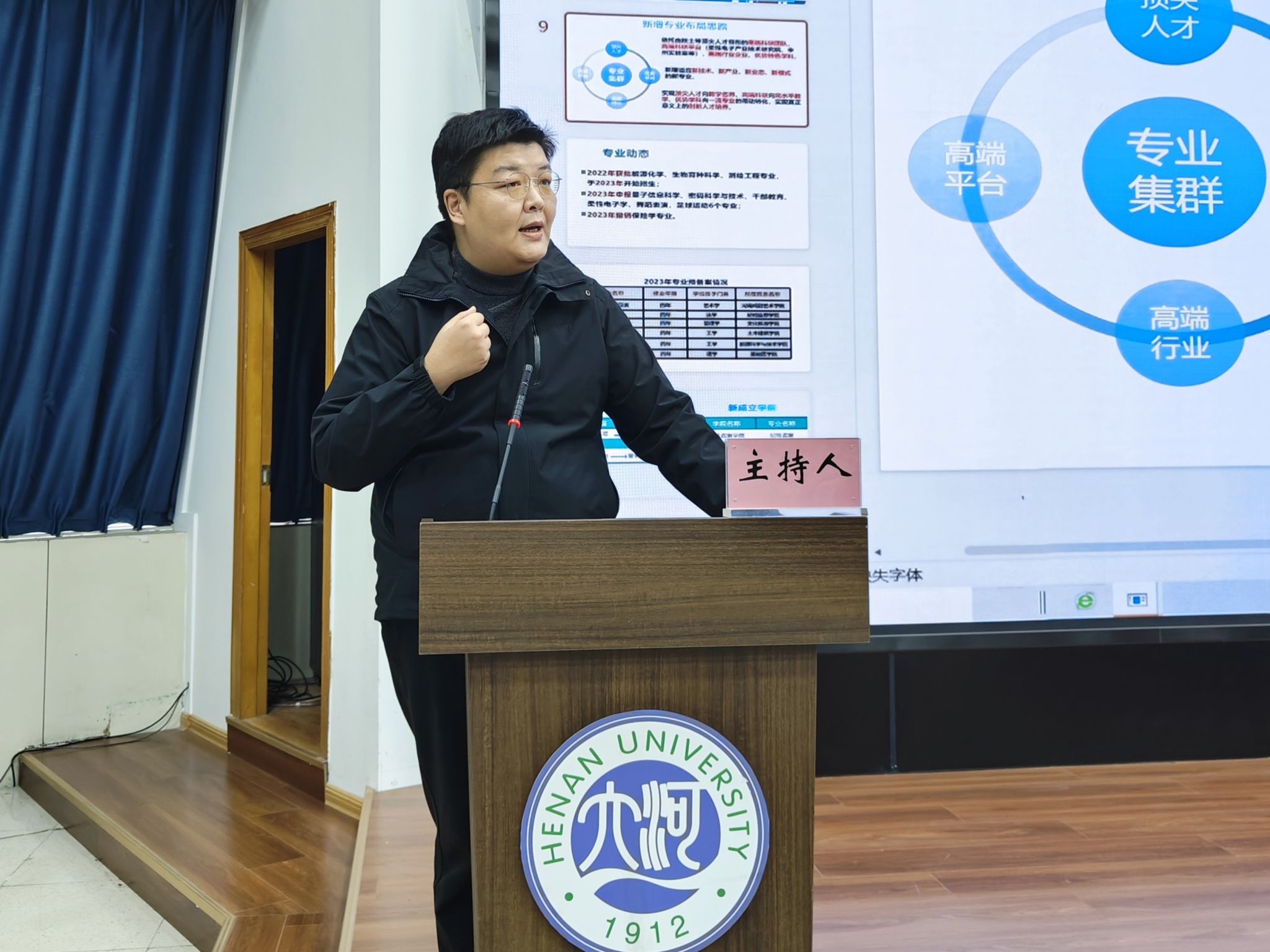 11月9日下午,物理与电子学院、未来技术学院(量子信息)在金明校区锥形报告厅召开专业人才培养能力提升暨师德师风建设警示教育大会。学校教务处副处长张琨应邀为两个学院全体教职工作《新时代背景下专业建设与人才培养路径思考》报告,物理与电子学院副院长魏高明作警示教育。培训会由未来技术学院副院长付佳主持。