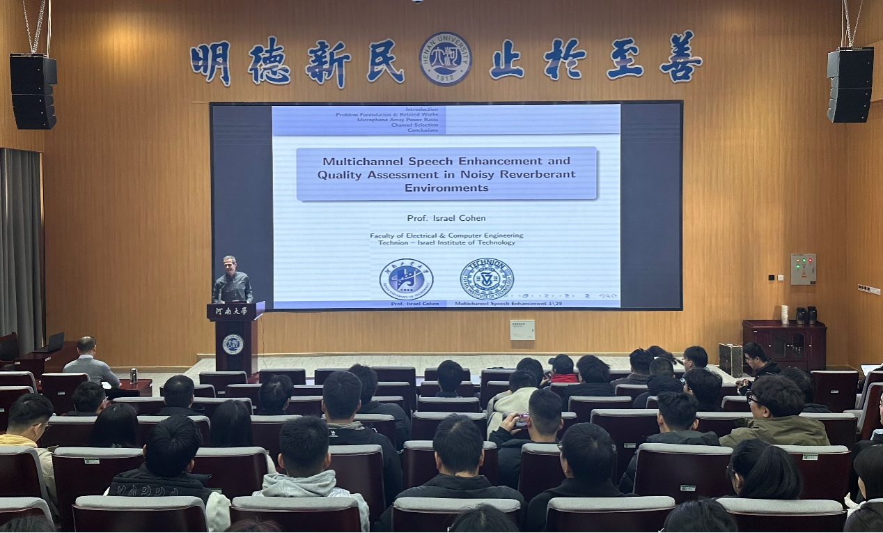 11月14日上午,以色列理工学院电气与计算机工程系教授Israel Cohen到人工智能学院访问交流,并在九章学堂南楼B座102报告厅作题为“嘈杂混响环境中的多通道语音增强和质量评估”的学术报告。学院执行院长路杨、部分教师代表、全体研究生参加。报告会由学院副院长周毅主持。