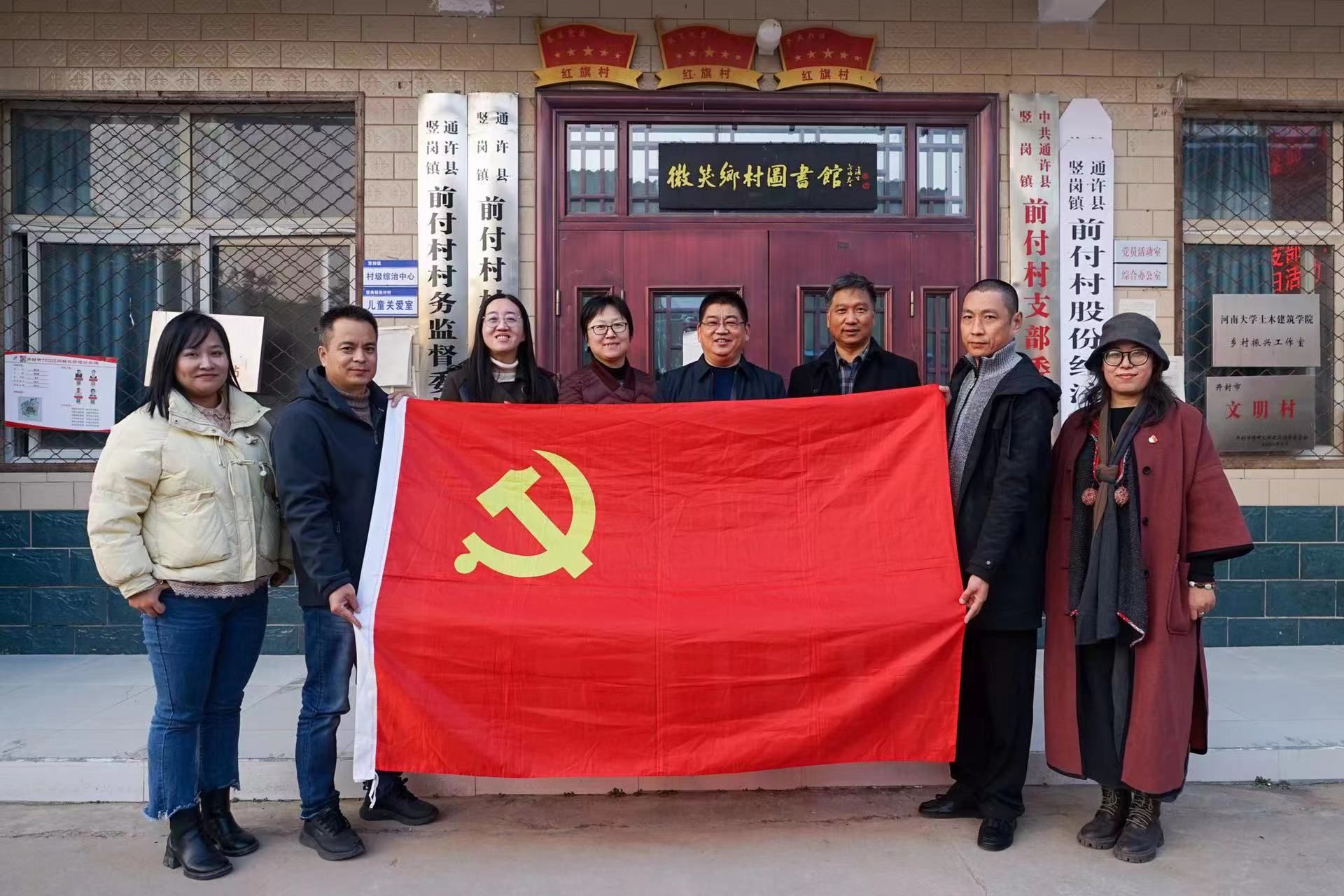 11月14日下午,美术学院党委书记杨江涛带领教工第三党支部书记刘阳,教工党支部党员代表周青、陈景华、赵曌、郑龙强、王庆龙、陈艳霞,前往开封市通许县竖岗镇前付村,与前付村党支部联合开展主题党日活动,看望慰问驻村干部,并召开了座谈会。省派驻村第一书记、校党委巡察办公室副处级巡察专员吴涛,驻村队员、美术学院副院长李龙国,通许县竖岗镇镇长王卫东,科工局副局长徐卫强,振兴专干郭红云,前付村党支部书记夏利伟,村委杨春平等相关人员参加活动,座谈会由吴涛主持。