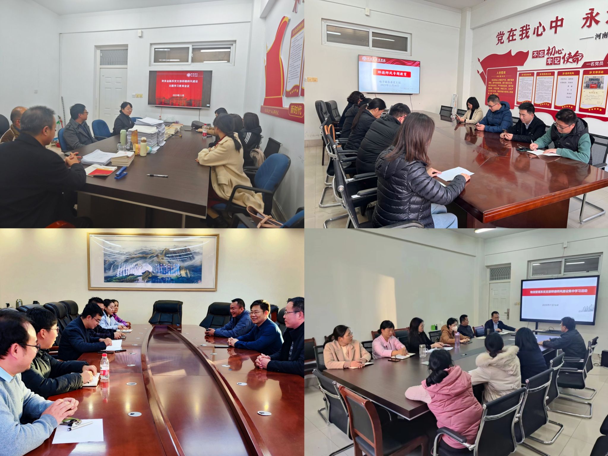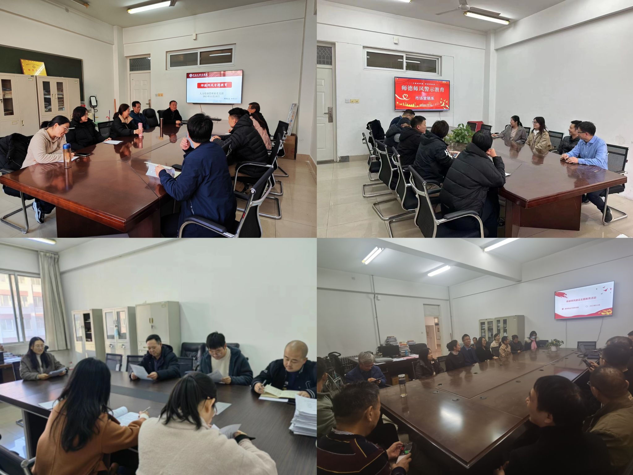 学院各教工党支部积极开展师德师风教育专题学习活动,通过“领学+研讨+自学”相结合的方式深入学习师德师风建设的重要性和工作要求,充分发挥党员先锋模范作用,严格自我约束、规范职业行为、强化道德自觉,进一步增强立德树人、教书育人的责任感和使命感。