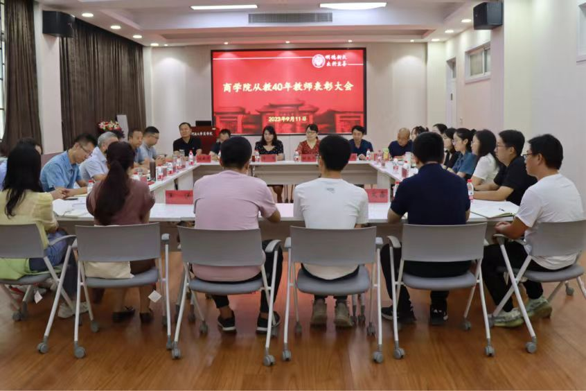 9月11日,商学院在109活动室举行从教四十年教师表彰大会及青年教师座谈会,会上执行院长席龙胜对王性玉教授从教四十年进行表彰。王性玉寄语青年教师要时刻心怀感恩,牢记“心中有目标,脚下有力量”,保持年轻的心态,努力奋斗为学院高质量发展贡献自己的力量。此次表彰大会总结了以王性玉教授为代表的优秀教师精神,提炼出宝贵的楷模力量;青年教师座谈会以此为媒介,达到了学习榜样精神,深入了解学院建设,指导未来工作的目的,传承商学院良好师德师风,传递教育正能量。