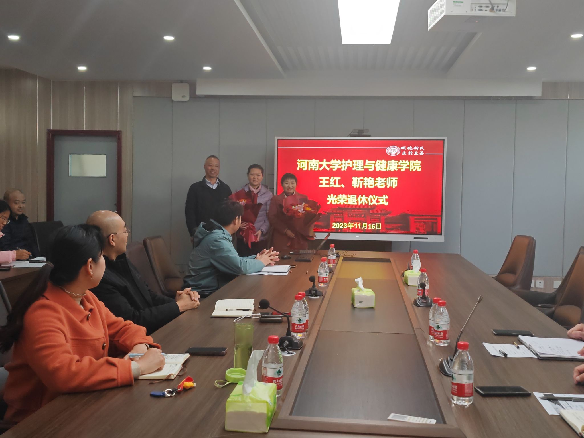 11月16日下午,护理与健康学院护理学实验教学中心王红老师、内科护理学教研室靳艳老师荣退仪式在学院二楼会议室举行,学院全体教职工参加仪式。仪式由副院长杜保明主持。