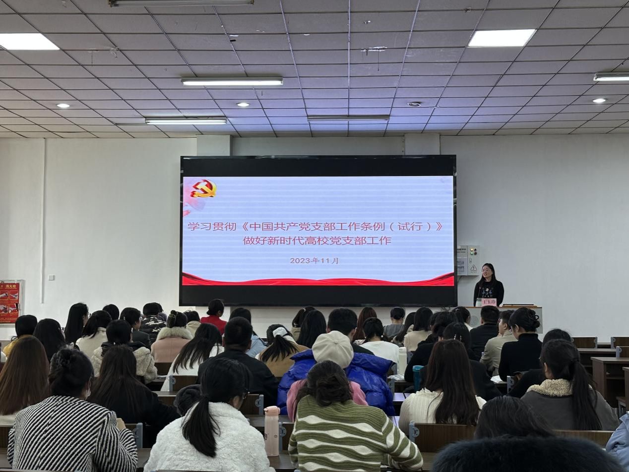 王玉珍以“学习贯彻《中国共产党支部工作条例(试行)》做好新时代高校党支部工作”为题,从关于党支部工作的重要论述、党支部工作的基本遵循、党支部工作的主要内容及要求三个方面进行讲解,并围绕当前学部支部工作中存在的薄弱环节,谈了具体的改进措施,要求各支部既要继承党支部建设的好做法好经验,也要立足新的实际,从党支部建设的内容、形式、方法上不断改进创新,提升党支部组织力。