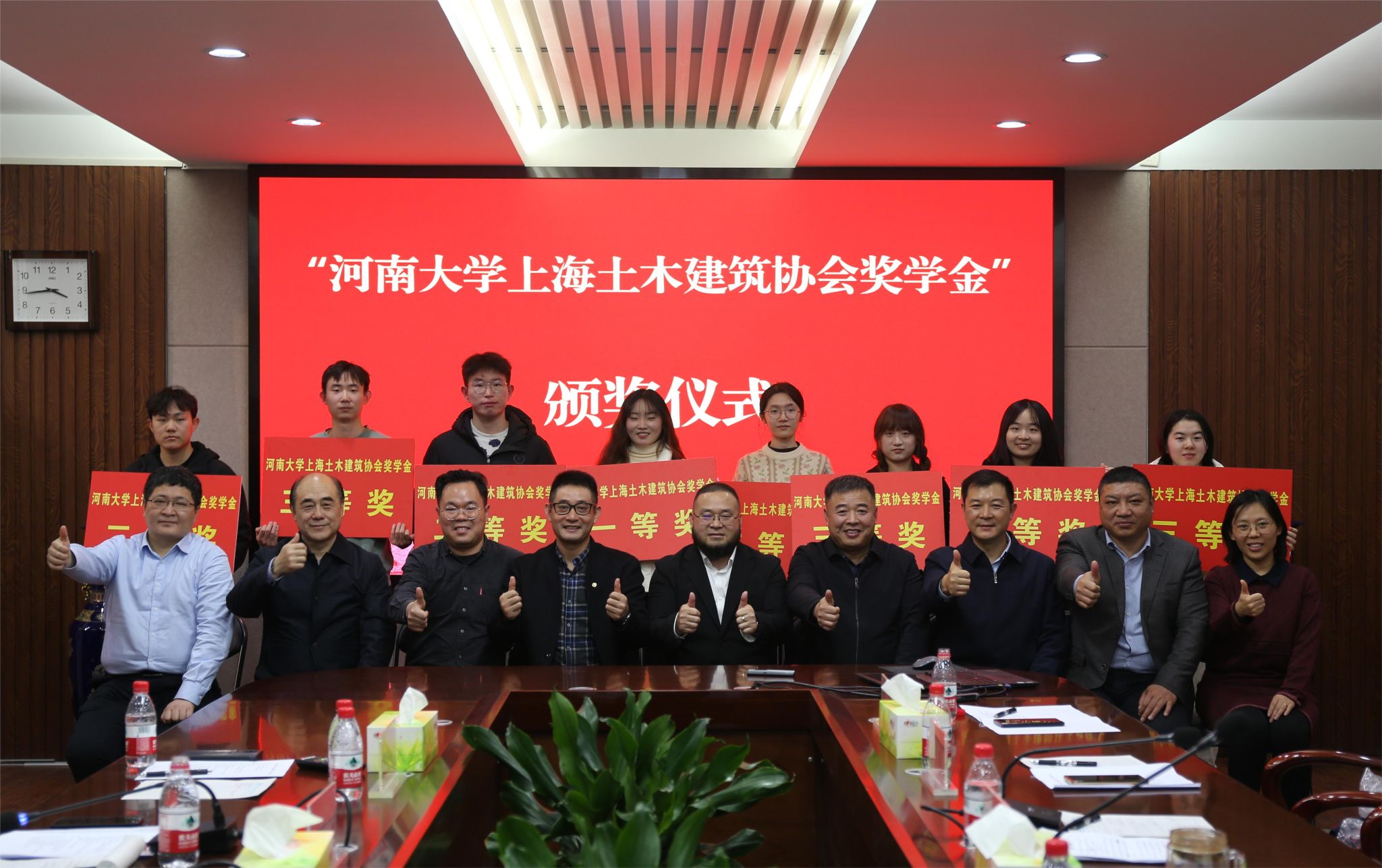 11月17日下午,首届“河南大学上海土木建筑协会奖学金”颁奖仪式在学院204会议室举行。河南大学上海校友会副会长、土木建筑分会会长、企业家联谊会会长、上海地德建筑设计有限公司创始人、设计总监汤世才,上海尤安建筑设计股份有限公司事业合伙人、主持建筑师、大成事业部总经理陈刚,方纵建筑设计(上海)有限公司总经理魏华伟,河南大学校友工作与教育发展基金会办公室主任、校友总会秘书长、教育发展基金会秘书长刘会军,土木建筑学院党委书记南晗,河南大学校友与基金工作联络专员、正处级组织员李社教,学院副院长李锋、史学民,建筑系相关老师,获奖学生及建筑学学生代表,参加本次颁奖仪式。会议由土木建筑学院执行院长张建伟主持。