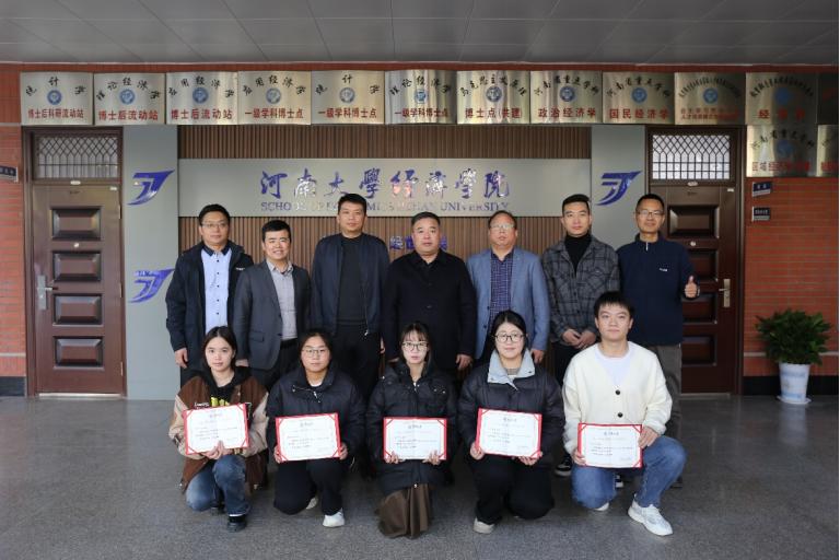 心系母院,筑梦未来。11月16日下午,经济学院2009级国贸财政“学长助学金”发放仪式在一楼院史馆举行。河南大学校友工作与教育发展基金会办公室主任刘会军,经济学院党委书记程金辉,党委副书记翟志远,经济学院2009级国贸专业本科毕业生李少楠、孙君龙、朱健涛、蔡广朋,以及经济学院2021级辅导员、学生代表等出席。仪式由翟志远主持。