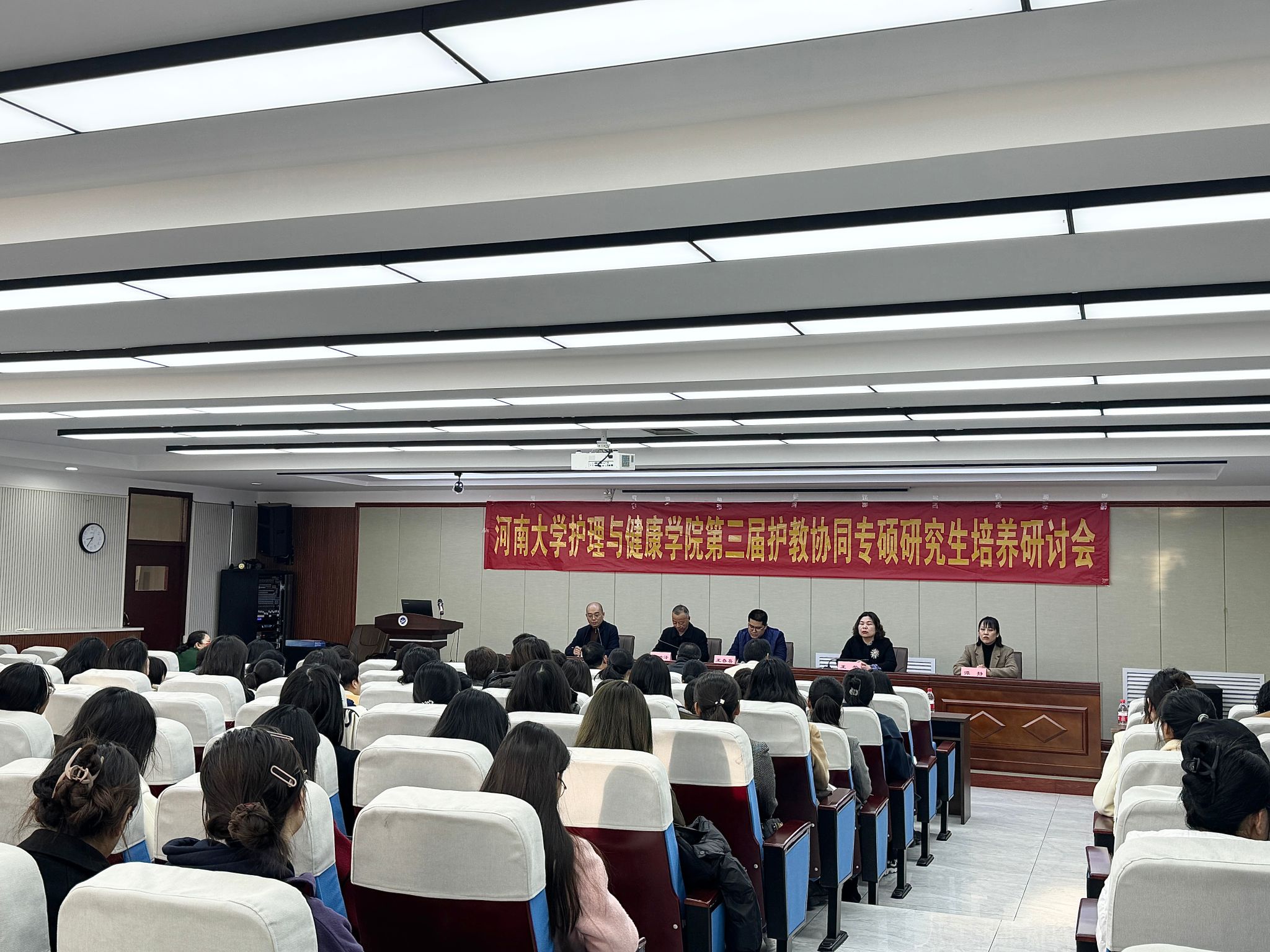 11月18日,护理与健康学院第三届护教协同专硕研究生培养研讨会在学院二楼报告厅举行。研究生院副院长王春喜、医学院党委常务副书记王莹、护理与健康学院全体班子成员、护理专硕研究生临床实践基地有关领导,学院专硕研究生导师、护理专硕研究生代表参加会议。会议由副院长李博主持。