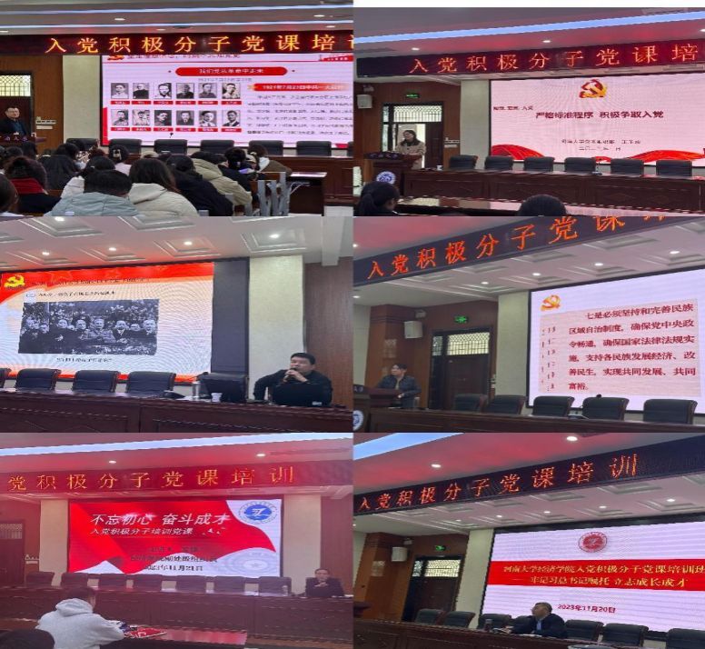 为深入学习贯彻习近平新时代中国特色社会主义思想和党的二十大精神,进一步提高入党积极分子的党性修养和理论水平,按照学院党委统一安排,11月15日至22日,经济学院举办2023年秋季入党积极分子党课培训班。校党委组织部副部长王玉珍、经济学院党委书记程金辉、经济学院正处级组织员王桂、经济学院副处级组织员姜捷、经济学院副院长吴郁秋、经济学院副院长郑珂等先后为入党积极分子授课。