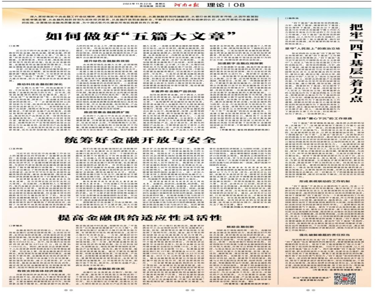 经济学院王作功教授撰写的文章《统筹好金融开放与安全》在《河南日报》2023年11月22日第8版发表。